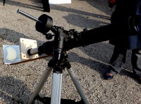 - Une paire de jumelles sur pied (8x42) avec objectifs protégés par les feuilles « astrosolar ». Nous avons pu voir une tache solaire avec ce dispositif .