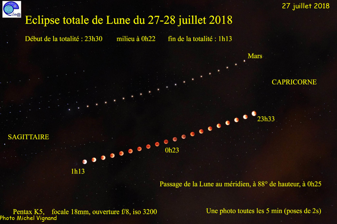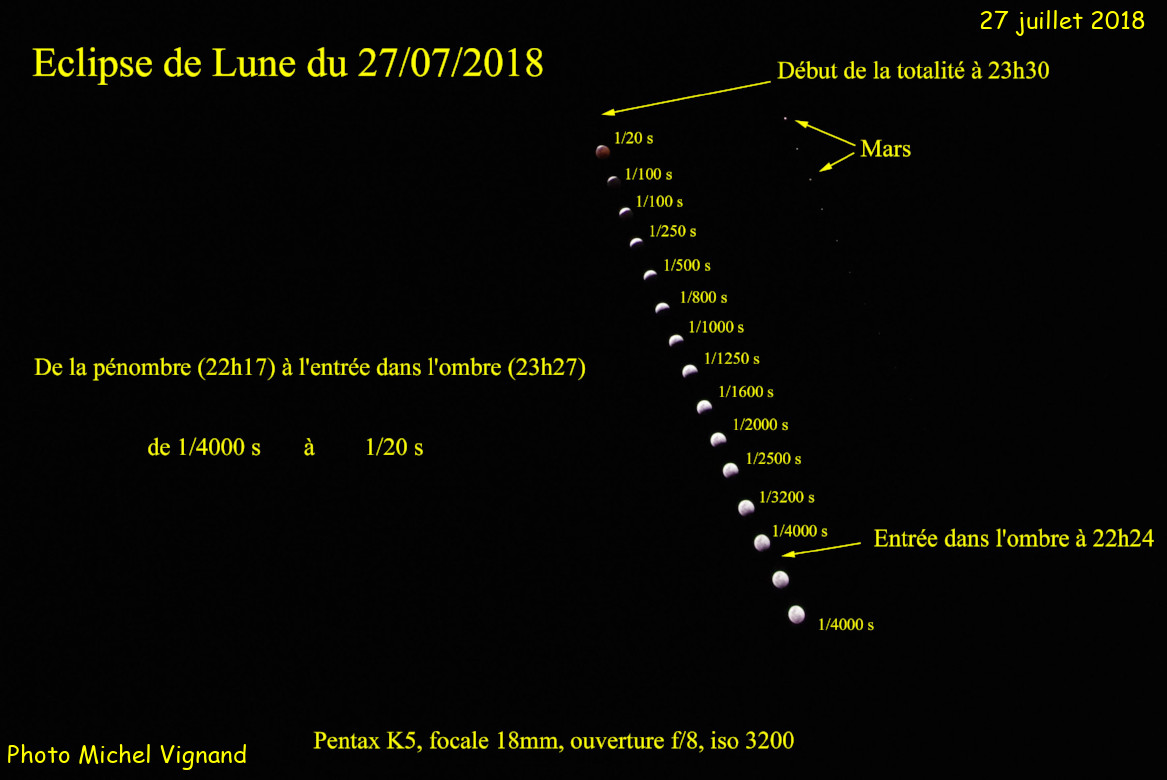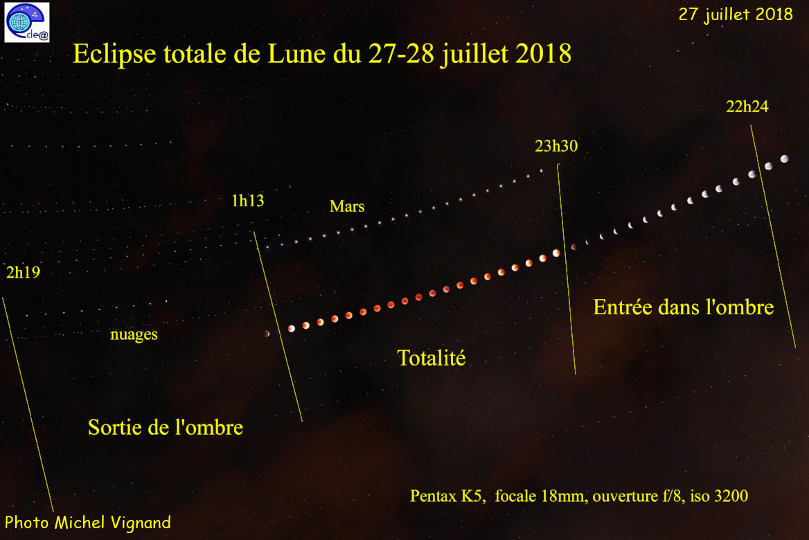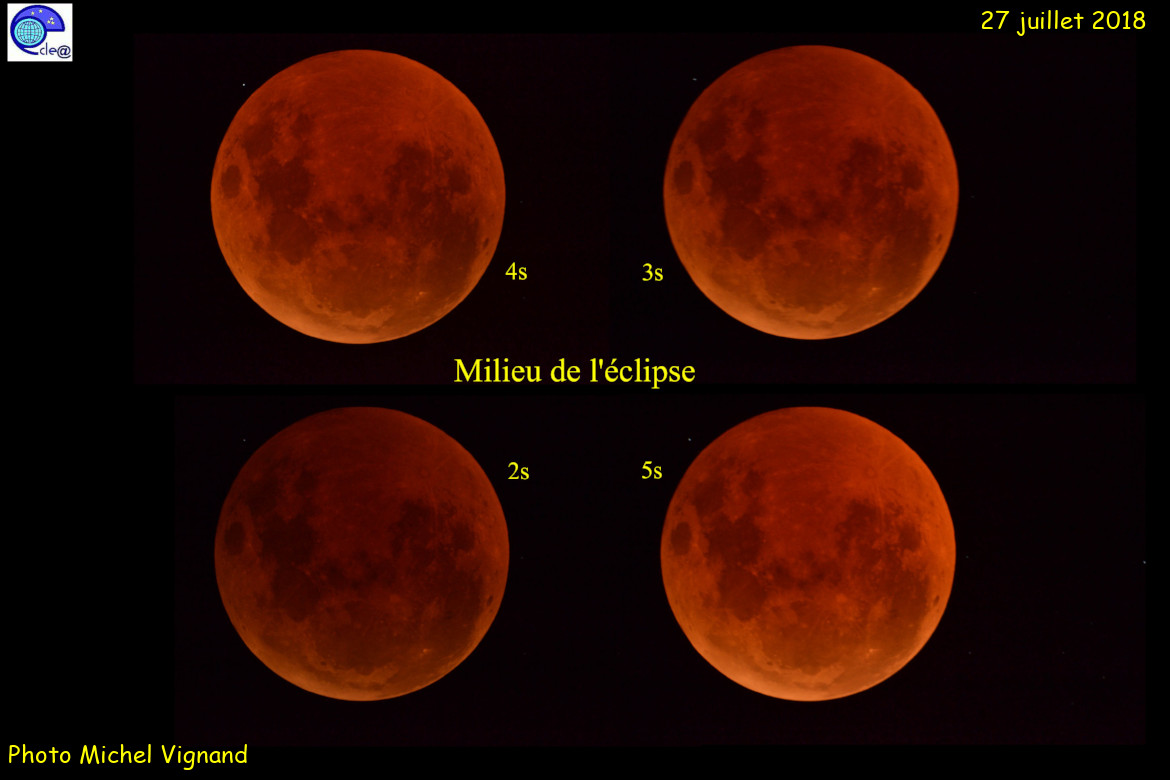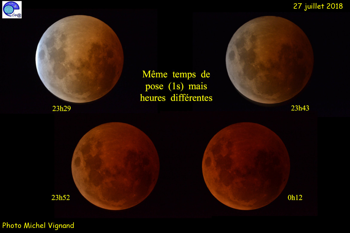 Images de l'éclipse de Lune du 27 juillet 2018, envoyées par nos correspondants, Michel Vignand et Anne Marie Louis.