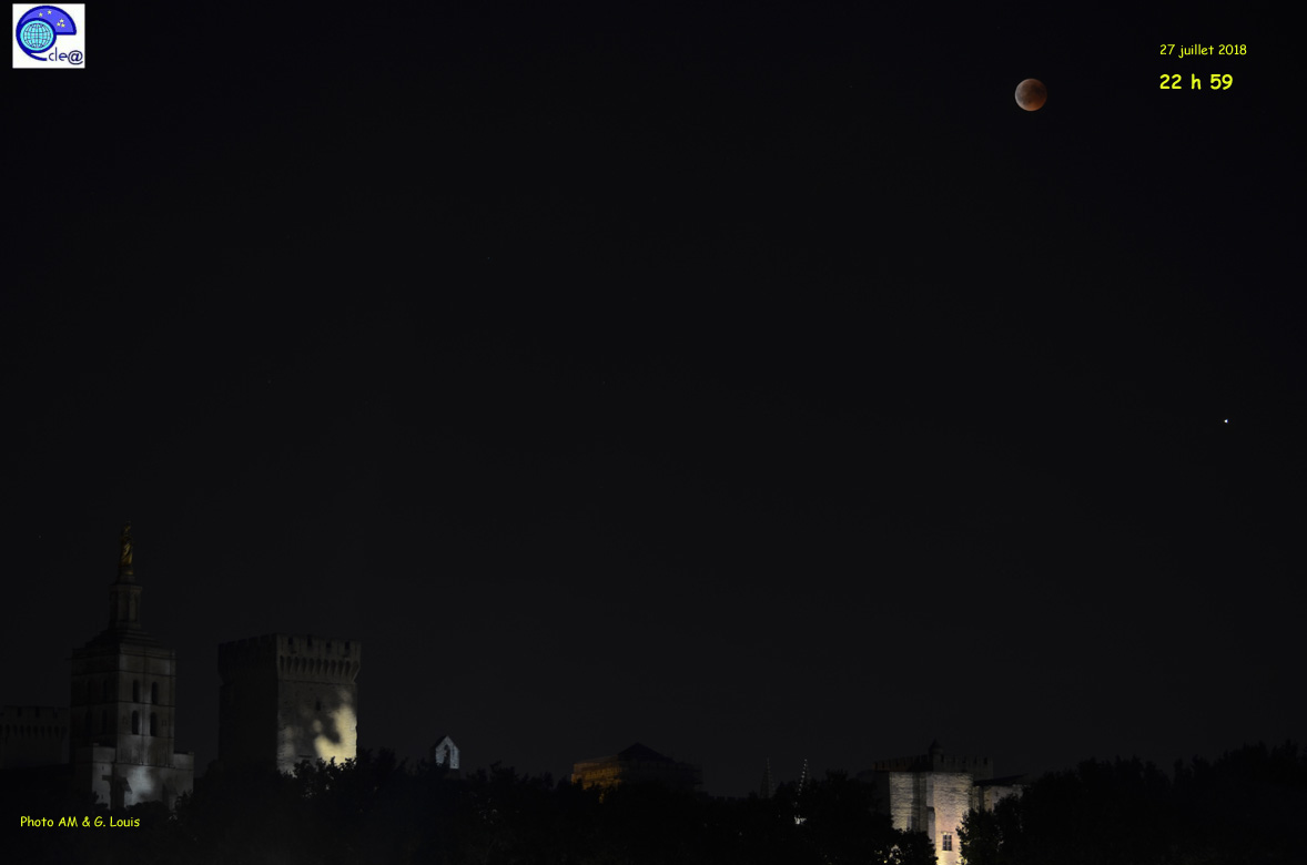 A Avignon, la Lune s'est levée déjà éclipsée. A peine visible sur les premières images, on peut facilement la faire apparaître, ainsi que l'horizon, en jouant sur la luminosité et la contraste.