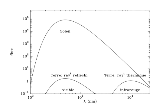 Il existe cependant des moyens de rendre envisageable une telle observation. Tout d'abord, le rapport de luminosité n'est pas le même à toutes les longueurs d'onde. Ainsi, dans l'infrarouge (autour de 10 mm pour la Terre), le rayonnement thermique propre de la planète atteint son maximum, alors que le rayonnement d'une étoile de type solaire chute rapidement (voir figure). Malheureusement, une grande partie du rayonnement infrarouge est inobservable depuis le sol, du fait de l'absorption par l'atmosphère terrestre. Ce type d'observations ne peut donc être réalisé qu'avec un télescope spatial. Par ailleurs, la combinaison de plusieurs télescopes (principe de l'interférométrie) permet de réaliser un télescope équivalent à un télescope géant, pour lequel la tache de diffraction sera réduite. Dans tous les cas, la mise en uvre de ces techniques s'avérant extrêmement lourd, elle le sera que pour l'étude de planètes pré-identifiées plutôt que pour la détection de nouveaux systèmes.