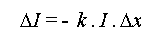 La loi de l'absorption est de type exponentiel. Soit un faisceau lumineux d'intensité I0 traversant un milieu absorbant. Dans une couche absorbante élémentaire Dx du milieu absorbant, l'intensité absorbée est proportionnelle à l'épaisseur, à l'intensité I du faisceau à l'entrée de l'élément, et à la nature du milieu k, le signe moins marquant la diminution.