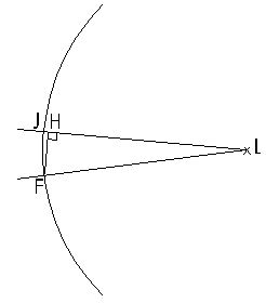 On trace le cercle de centre L passant par F. Il coupe (LH) en J. La longueur de l'arc FJ est très proche de celle du segment [FH].