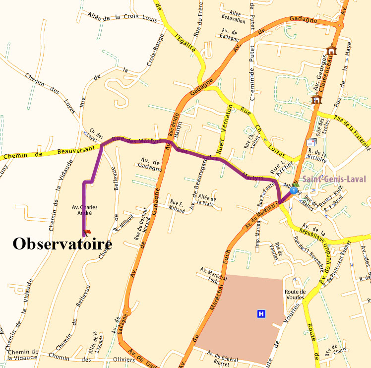 | L'Observatoire à Saint Genis-Laval au sud de Lyon | De l'arrêt de bus Saint-Genis Centre jusqu'à l'Observatoire (1,4km) |