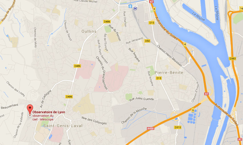 Lieu : Observatoire de Lyon, Avenue Charles-André, Saint-Genis Laval Plan