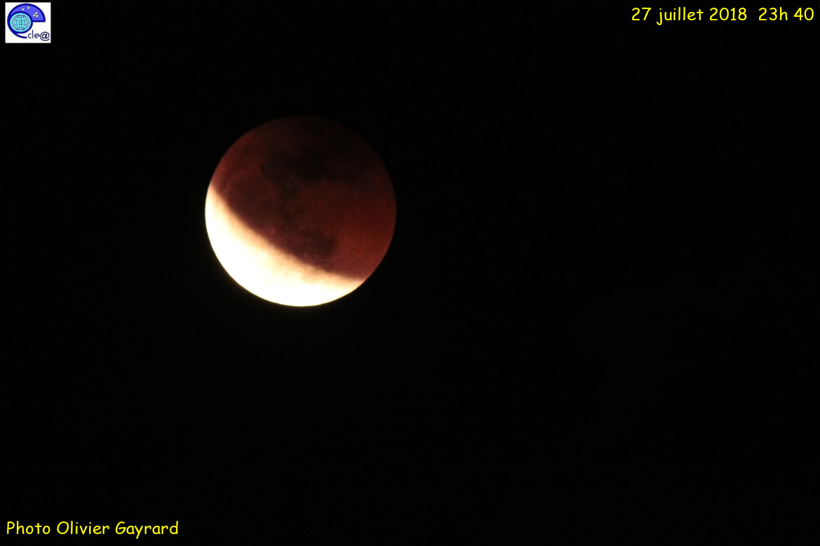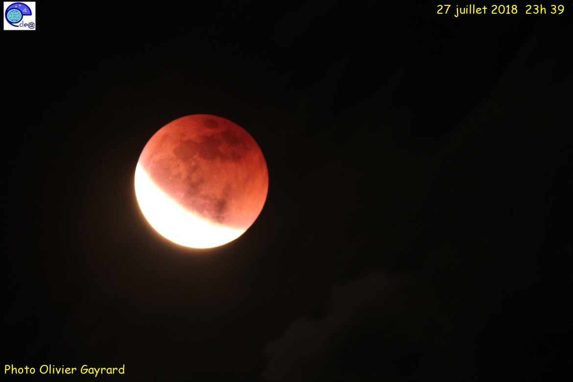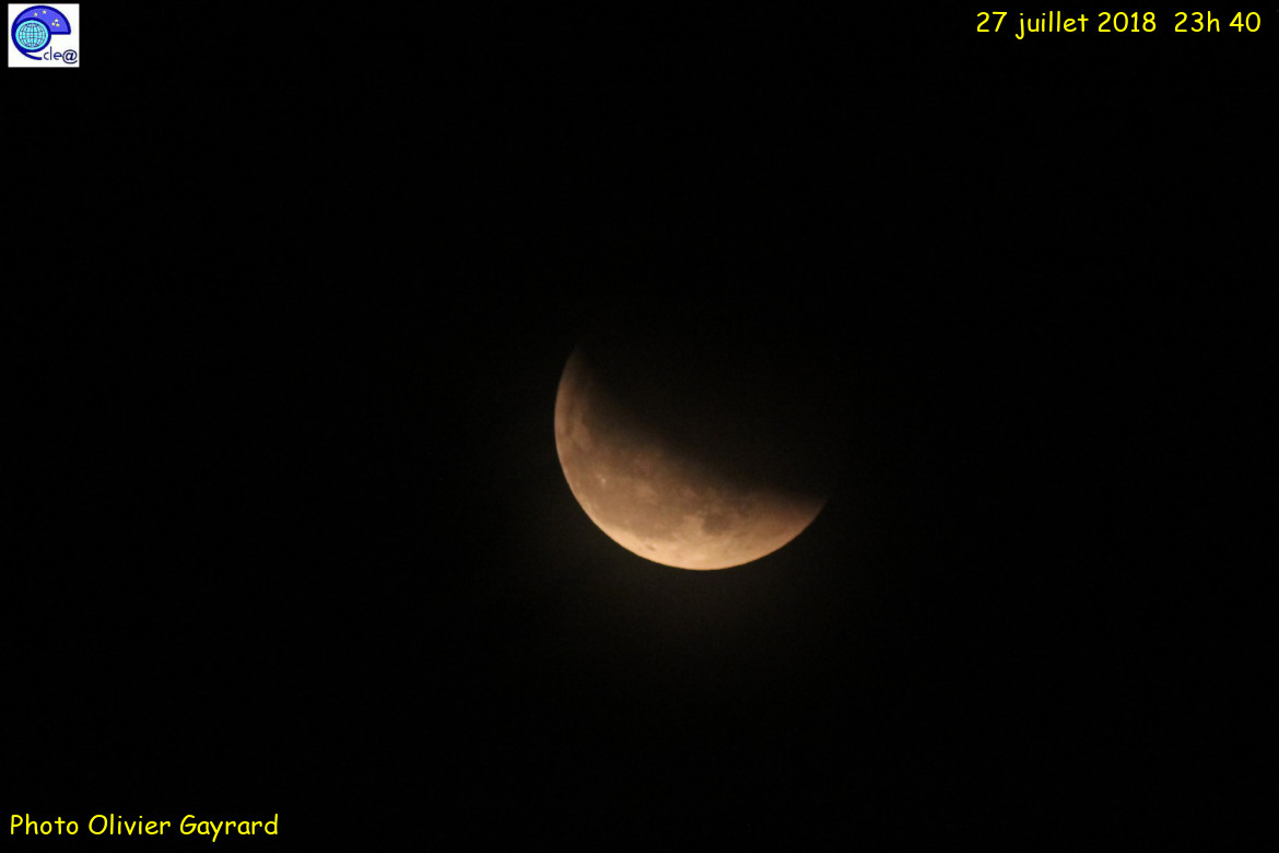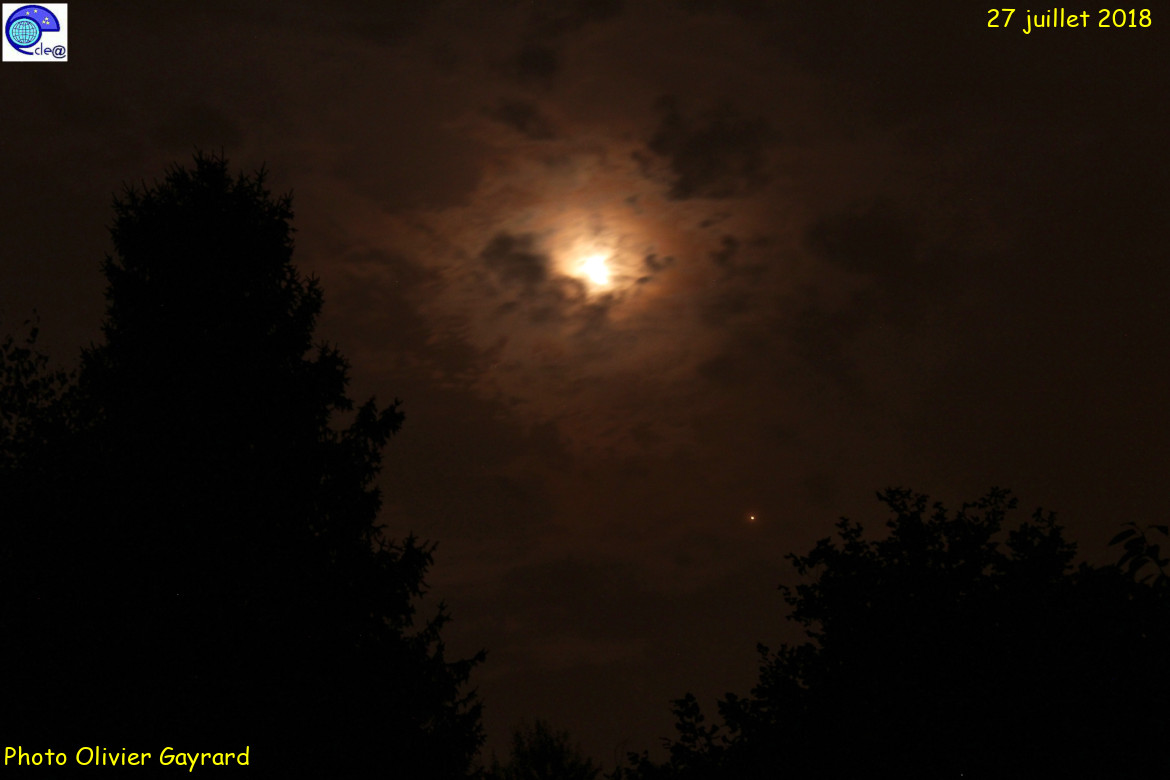 Olivier Gayrard, depuis la Tarn, a réussi à saisir un instant de l'éclipse à travers les nuages. Sur sa première image on voit aussi la planète Mars qui, le même jour, passait à l'opposition.