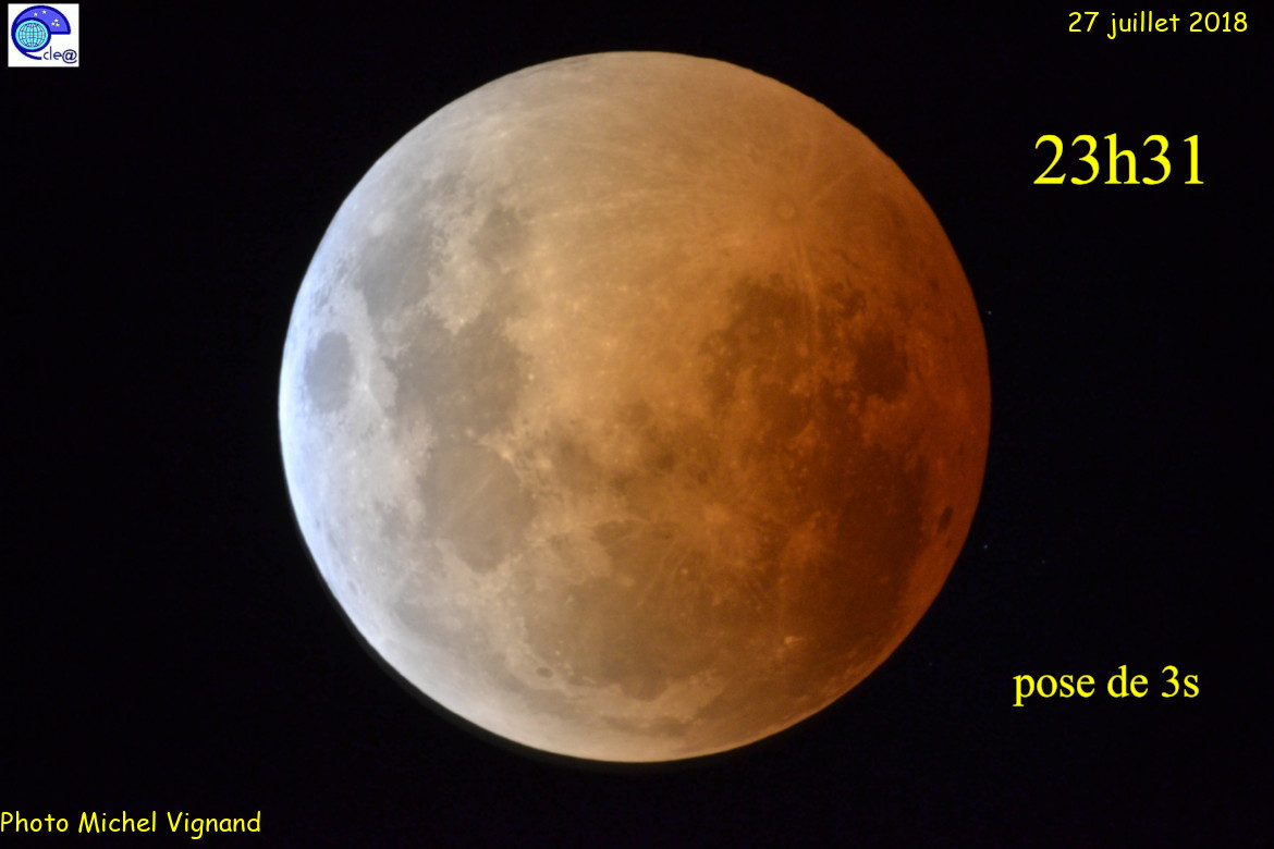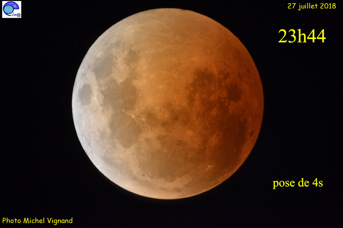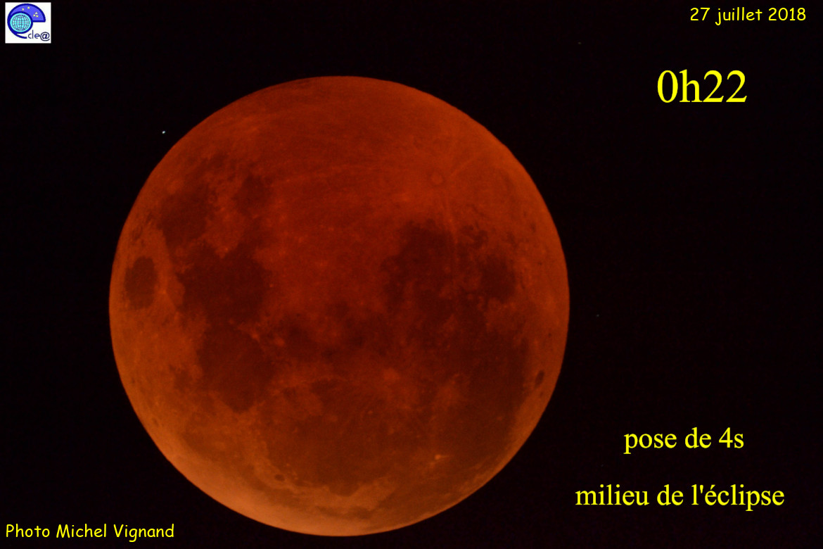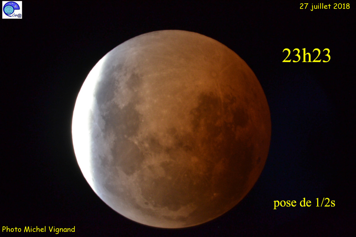 Et c'est depuis La Réunion, de l'autre côté de l'équateur et bien plus à l'est, que Michel Vignand a pu saisir les premières phases de l'éclipse avec l'entrée dans l'ombre (en métropole la Lune n'était pas encore levée) et construire un filé sur lequel on voit aussi Mars au dessus (mais toujours bien au sud) de la Lune. On y voit aussi d'autres étoiles : saurez-vous les identifier ? Dates en heures locales.