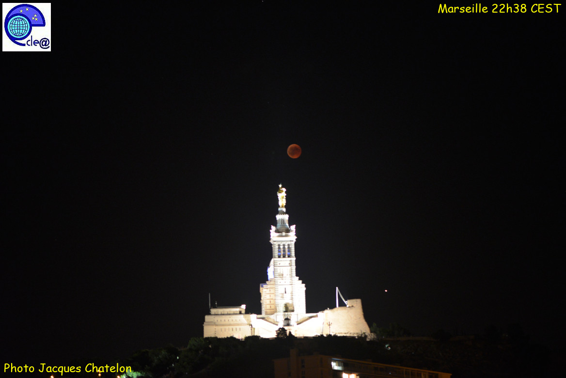 C'est depuis le Cap Falcon, à Toulon, que Jacques Zapp a pu observer l'éclipse, mais aussi Mars, Vénus, et Jupiter, toutes trois visibles ce soir là. Jacques Chatelon nous propose de son côté la rencontre de "trois astres" : la Lune, Mars et Notre Dame à Marseille.