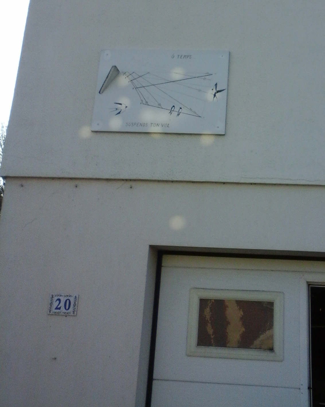 Voir le cadran solaire qui orne les deux étages de la montée d’escalier du Lycée Stendhal à Grenoble. Ce cadran qui est monument historique fonctionne sur le principe du sténopé à réflexion. Deux petits miroirs carrés sont fixés sur les rebords de deux fenêtres voisines et donnent l’heure solaire et la date par une tache de lumière dans l’escalier décoré de façon splendide