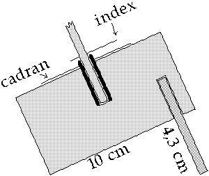-On peut fixer sur la face A un bristol sur lequel on notera la position de l'extrêmité de l'ombre du gnomon toutes les heures. On retrouve les mêmes relevés que ceux que l'on aurait pu faire auparavant avec le vrai Soleil.