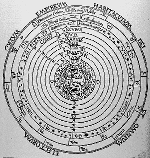 Tycho Brahé | Prudent et diplomate, comme il convenait de l'être à son époque, Tycho Brahé conçoit pour sa part un modèle intermédiaire : la Terre reste au centre du Monde. Le Soleil tourne autour d'elle. Les Planètes tournent autour du Soleil. |