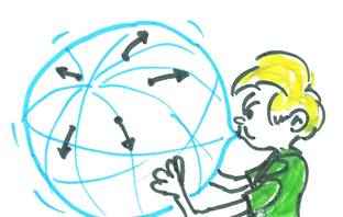 Prenons un ballon de baudruche, un ballon que l'on gonfle. Notre univers serait semblable à la surface du ballon ; je dis bien la surface du ballon. L'intérieur ou l'extérieur du ballon ne serait pas l'univers actuel mais ne serait que le passé ou le futur. Le présent serait la surface. Dans ce schéma, les galaxies et même les hommes (tout quoi !) seraient infiniment plats, sans épaisseur.