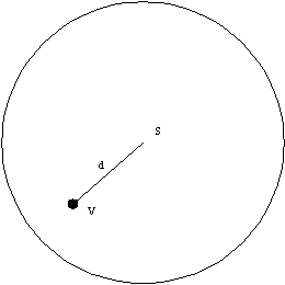 Sur chacune des photos, on aura le Soleil dont il est facile de déterminer le centre S (en traçant par exemple les médiatrices de deux cordes) et Vénus dont le centre sera noté V. On mesure avec un maximum de précision et sur chaque photo la distance d entre S et V.