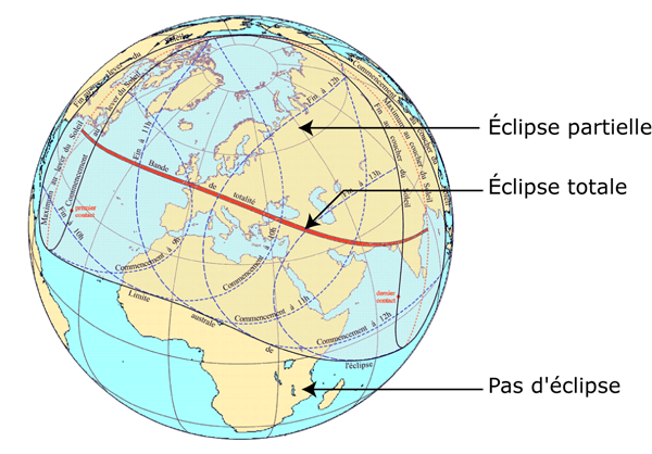 L’éclipse est totale pour toutes les personnes situées sur cette bande de totalité.